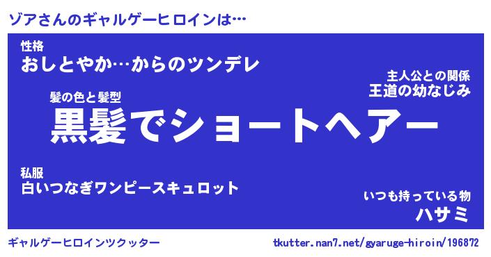 | 男性向けラノベタイトル風あだ名 | 『ゾアの憂鬱』 |