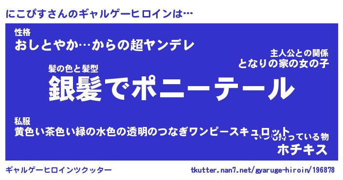 | 意味不明あだ名 | 『ペロリンにこぴす』『永久保存にこぴす』 |