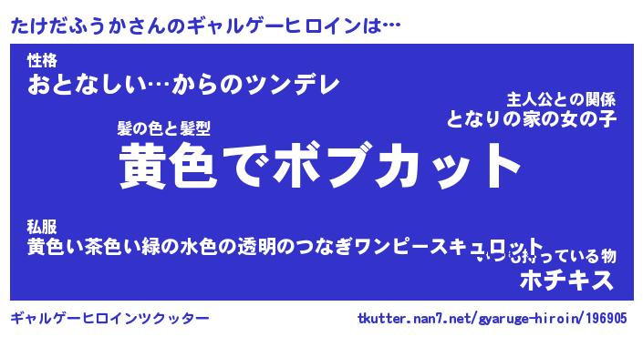 | ヒーロー風カッコイイあだ名 | 『スーパータケダフウカ』『黄金騎士タケ』 |