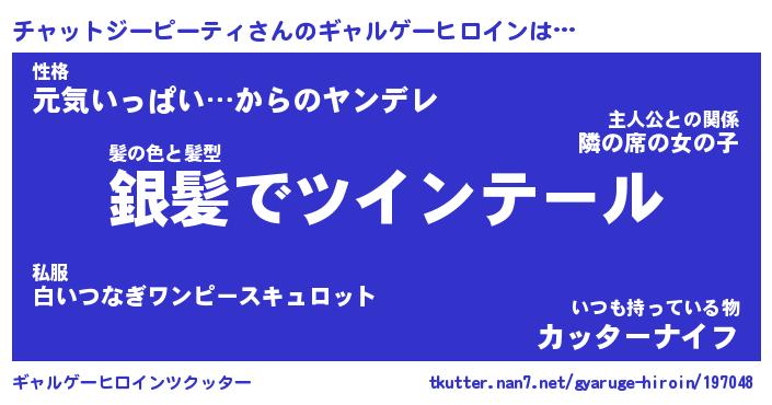| 伝説のあだ名 | 『不死鳥のスナイパーチャットジーピーティ』 |