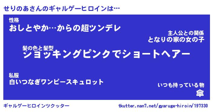 | ヘコむあだ名 | 『せりもー』『つくし』『せりっぺ』 |