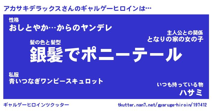 | 女子向けラノベタイトル風あだ名 | 『アカサキデラックス姫と円卓の騎士』 |