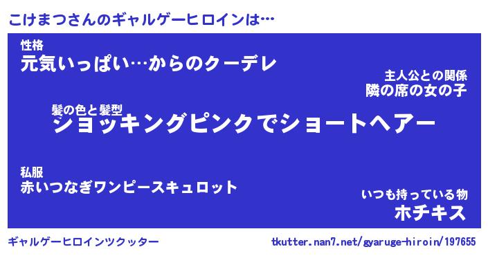 | ファンタジー風あだ名 | 『コケフェル』『エターナルコケマツー』 |