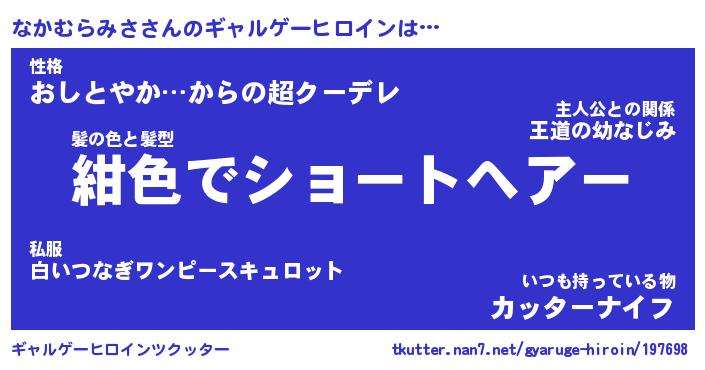 | ヒーロー風カッコイイあだ名 | 『スーパーナカムラミサ』『幻影騎士ナカ』 |