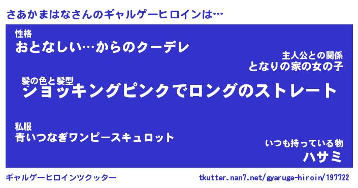 | 女子向けラノベタイトル風あだ名 | 『(仮)さあかまはなのやんごとなき事情』 |