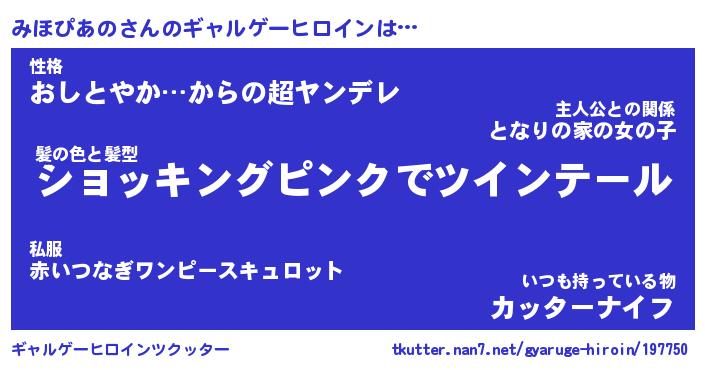 | 男性向けラノベタイトル風あだ名 | 『みほぴあのの憂鬱』 |