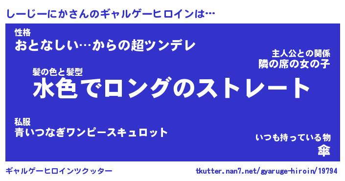 | 男性向けラノベタイトル風あだ名 | 『しーじーにかの憂鬱』 |