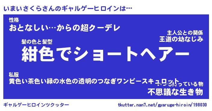 | ヒーロー風カッコイイあだ名 | 『スーパーイマイサクラ』『天弓騎士イマ』 |