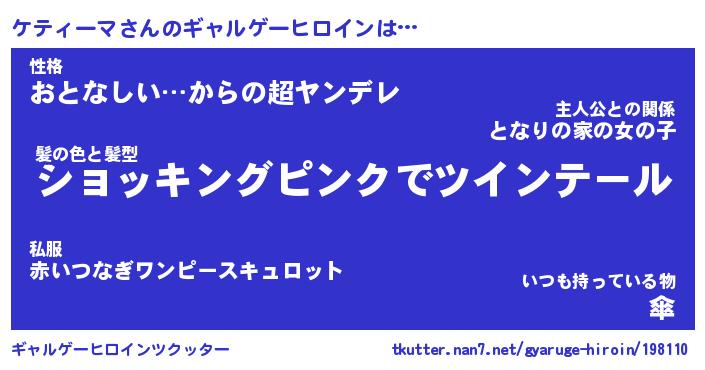 | ヘコむあだ名 | 『ケテにゅー』『なまこ酢』『ケテを』 |