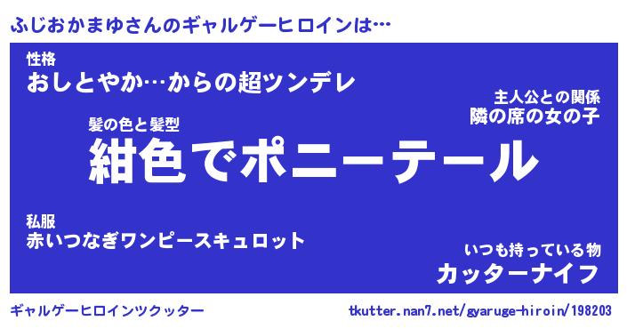 | 肩書あだ名 | 『ふじおかまゆ御曹司』 |