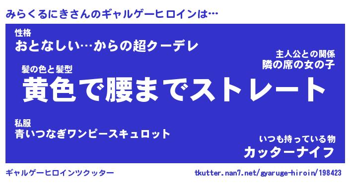 | ヒーロー風カッコイイあだ名 | 『スーパーミラクルニキ』『暗黒騎士ミラ』 |