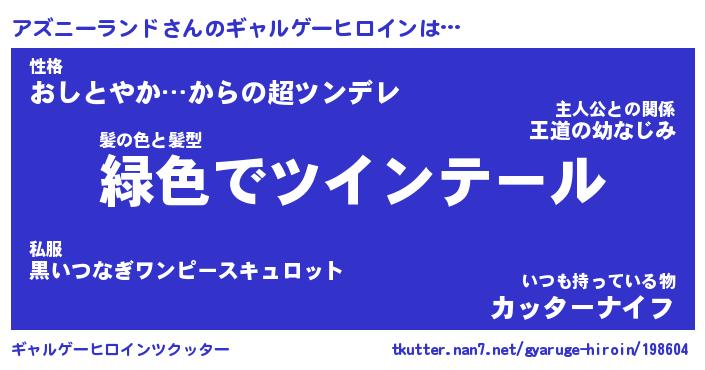 | 男性向けラノベタイトル風あだ名 | 『アズニーランドアートオンライン』 |
