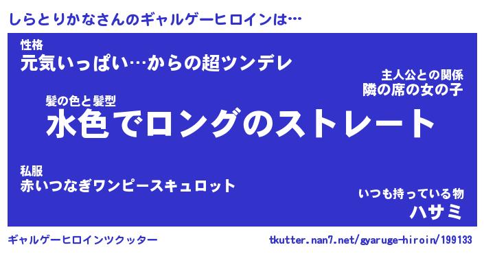 | 男性向けラノベタイトル風あだ名 | 『しらとりかなの憂鬱』 |