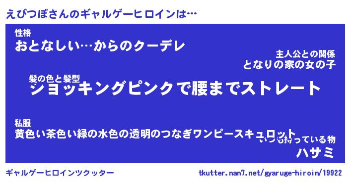 | 意味不明あだ名 | 『ペロリンえびつぼ』『永久保存えびつぼ』 |