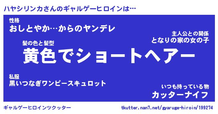 | 男性向けラノベタイトル風あだ名 | 『ハヤシリンカアートオンライン』 |