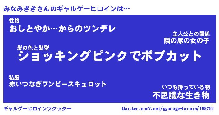 | 胡散臭い通販商品みたいなあだ名 | 『必ず成功するブレスレット…その名も「みなみきき」』 |