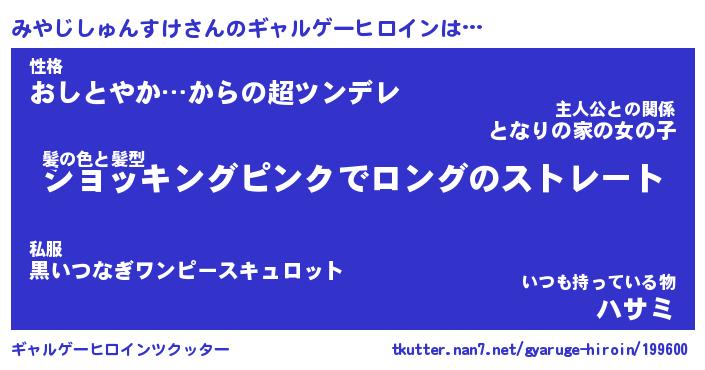 | 男性向けラノベタイトル風あだ名 | 『みやじしゅんすけの憂鬱』 |