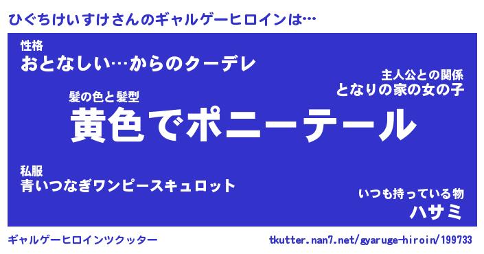 | 女子向けラノベタイトル風あだ名 | 『誰かこのひぐちけいすけを説明してください! ~契約から始まるウェディング~』 |