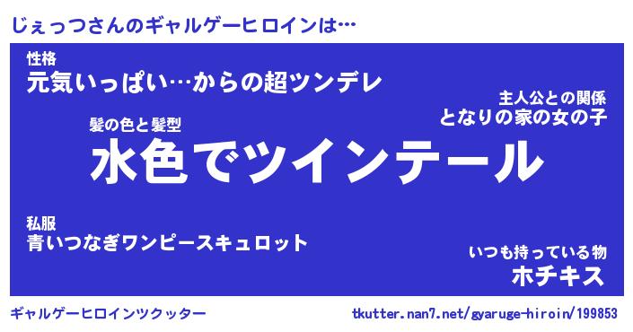 | 男性向けラノベタイトル風あだ名 | 『じぇっつの憂鬱』 |