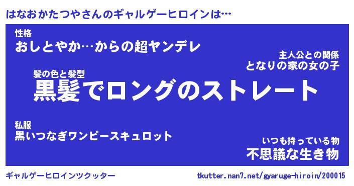 | 男性向けラノベタイトル風あだ名 | 『はなおかたつやの憂鬱』 |
