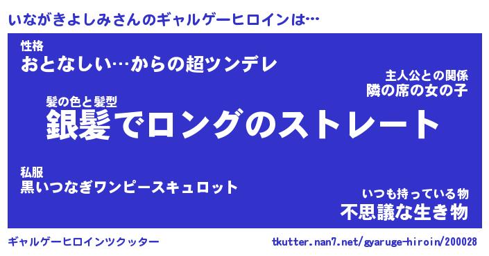 | 男性向けラノベタイトル風あだ名 | 『いながきよしみの憂鬱』 |