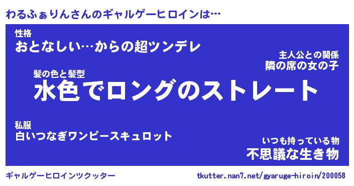 | 男性向けラノベタイトル風あだ名 | 『わるふぁりんの憂鬱』 |