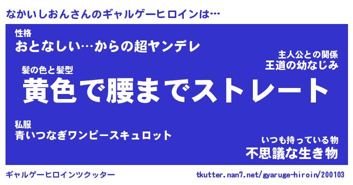 | 男性向けラノベタイトル風あだ名 | 『ナカイシオンアートオンライン』 |
