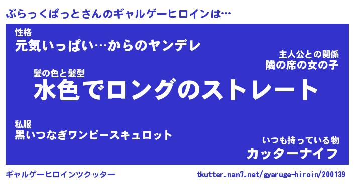 | 女子向けラノベタイトル風あだ名 | 『(仮)ぶらっくばっとのやんごとなき事情』 |