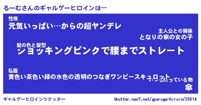 | ヘコむあだ名 | 『るーもー』『なまこ酢』『るー太郎』 |