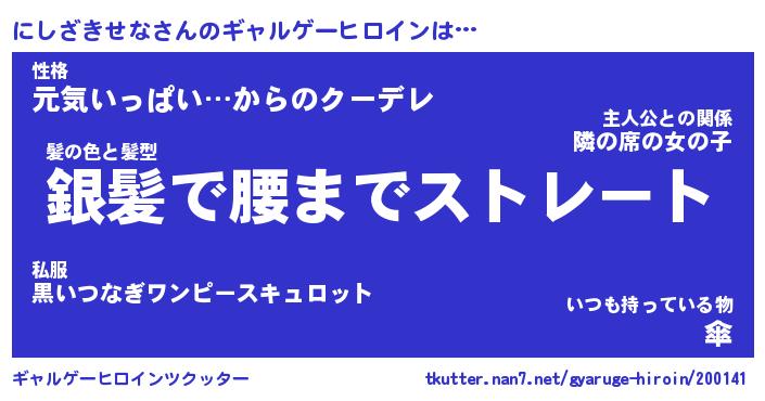| 女子向けラノベタイトル風あだ名 | 『にしざきせな姫と円卓の騎士』 |