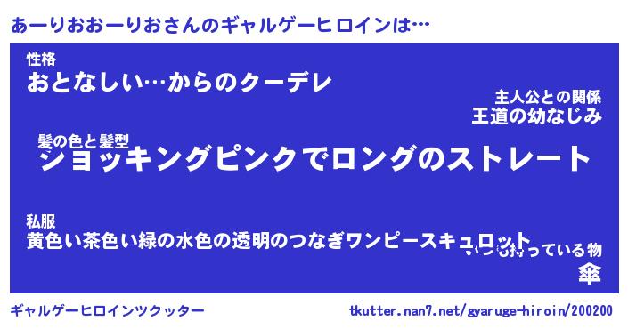 | 女子向けラノベタイトル風あだ名 | 『(仮)あーりおおーりおのやんごとなき事情』 |