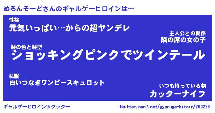 | ヘコむあだ名 | 『めろもー』『なまこ酢』『めろ太郎』 |