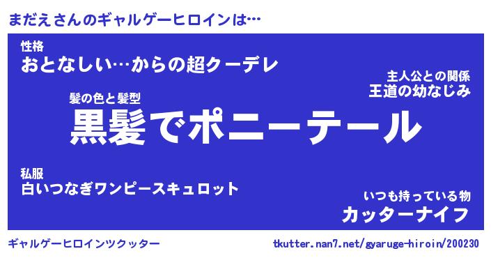 | ファンタジー風あだ名 | 『マダフェル』『エターナルマダエー』 |