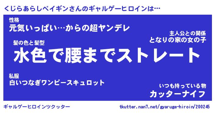 | 男性向けラノベタイトル風あだ名 | 『くじらあらしペイギンの憂鬱』 |