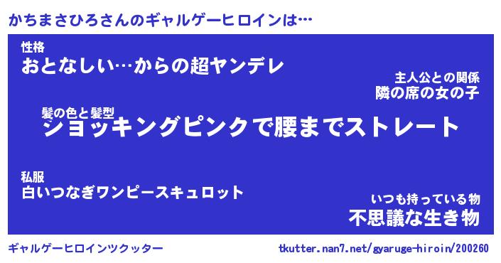 | 女子向けラノベタイトル風あだ名 | 『(仮)かちまさひろのやんごとなき事情』 |
