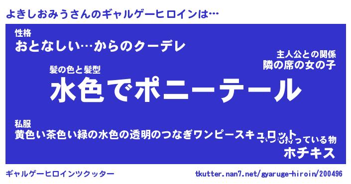 | 胡散臭い通販商品みたいなあだ名 | 『必ず成功する水晶球…その名も「よきしおみう」』 |