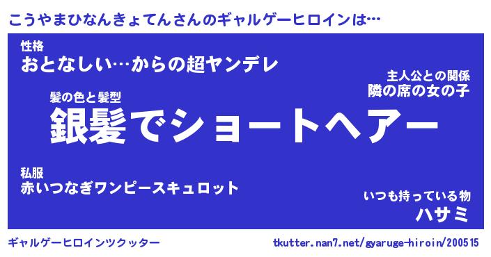 | 男性向けラノベタイトル風あだ名 | 『こうやまひなんきょてんの憂鬱』 |