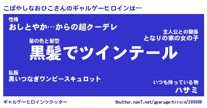| 女子向けラノベタイトル風あだ名 | 『(仮)こばやしなおひこのやんごとなき事情』 |