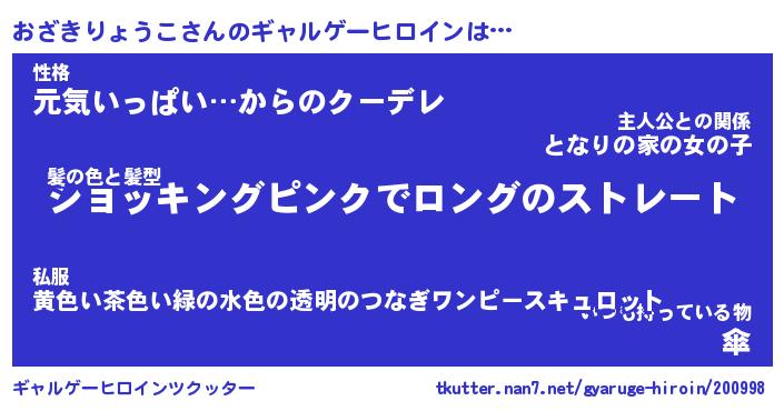 | 女子向けラノベタイトル風あだ名 | 『(仮)おざきりょうこのやんごとなき事情』 |