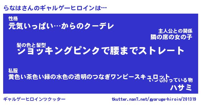 | 意味不明あだ名 | 『ペロリンらなは』『らなはフォーエバー』 |
