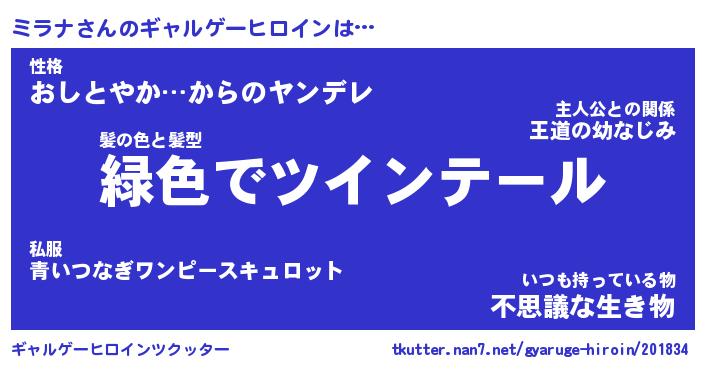 | ポケモン風あだ名 | 『ミラチュウ』『ミラナダネ』 |