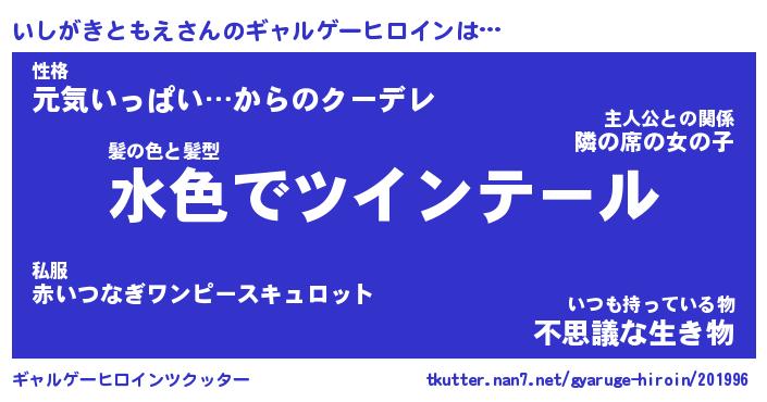 | 男性向けラノベタイトル風あだ名 | 『いしがきともえの憂鬱』 |