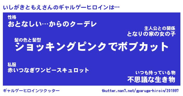 | ヘコむあだ名 | 『いしにー』『酢こんぶ』『いしっ子』 |