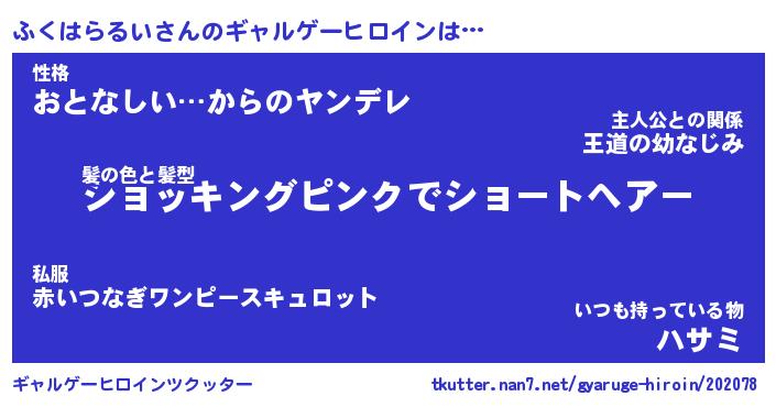 | 女子向けラノベタイトル風あだ名 | 『(仮)ふくはらるいのやんごとなき事情』 |