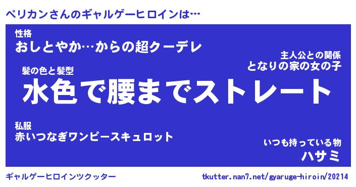 | ファンタジー風あだ名 | 『ペリフェル』『エターナルペリカンー』 |