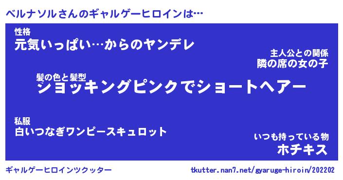 | 男性向けラノベタイトル風あだ名 | 『べルナソルの憂鬱』 |