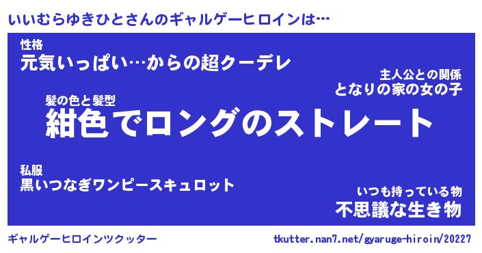 | 男性向けラノベタイトル風あだ名 | 『イイムラユキヒトアートオンライン』 |