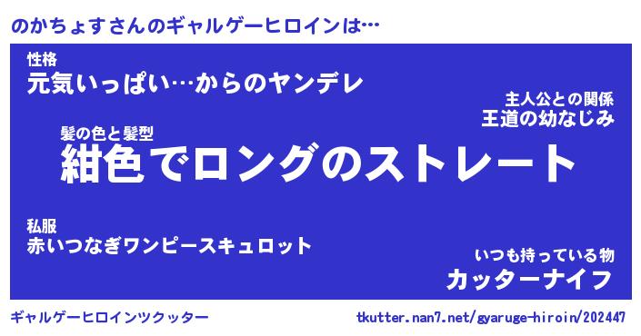 | 男性向けラノベタイトル風あだ名 | 『ノカチョスアートオンライン』 |