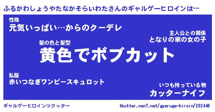| ツイッター | ふるかわしょうやたなかそらいわたさんのツイッターID『namakemono_star』 |