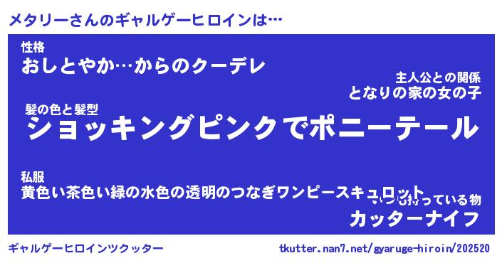 | ファンタジー風あだ名 | 『メタフェル』『エターナルメタリーー』 |
